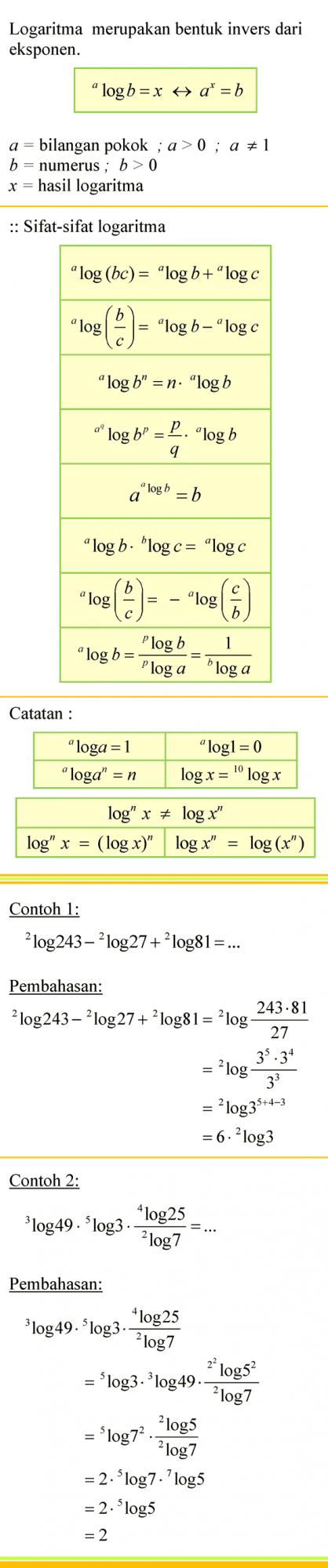 Pengertian dan Sifat-Sifat Logaritma
